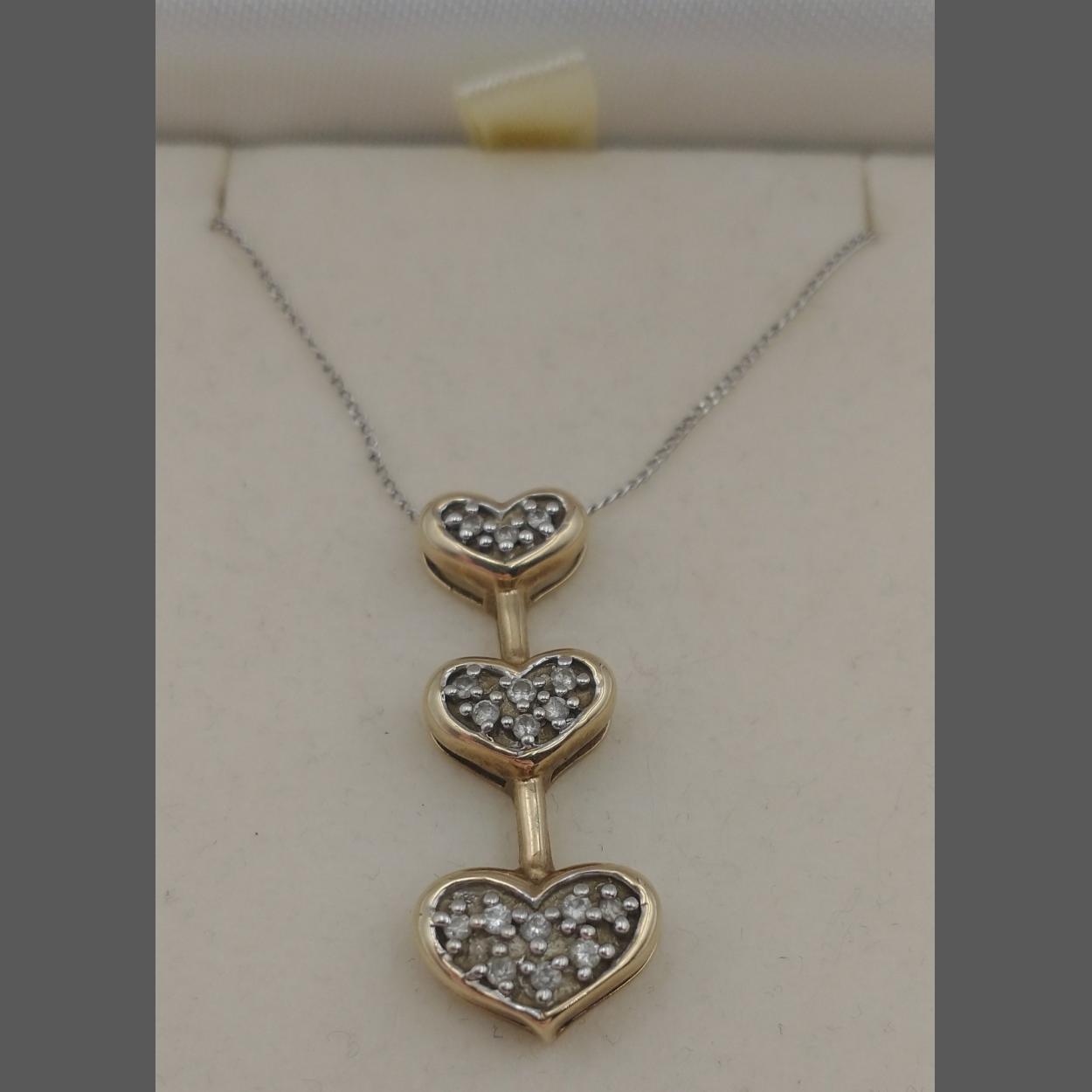 A diamond triple heart pendant, stamped 375, approx 2.5cm long on a white gold chain also stamped 375. Gross weight 3.5g approx