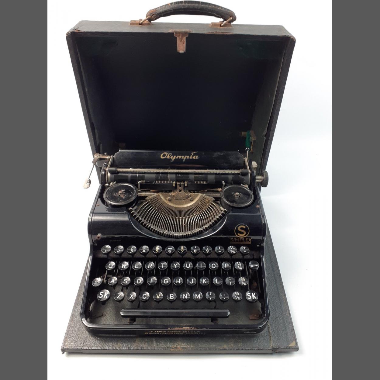 A portable vintage SIMPLEX OLYMPIA typewriter in case. Appears to be in good order
