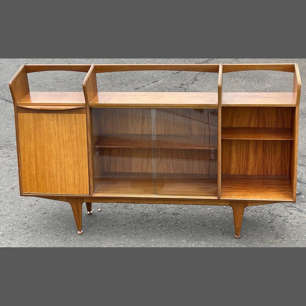 A McIntosh teak RETRO display/bookcase glazed sliding doors cabinet - dimensions 5ft length x3ft height x 12" depth approx - in nice condition - comes complete with the original McIntosh label