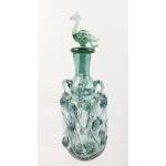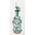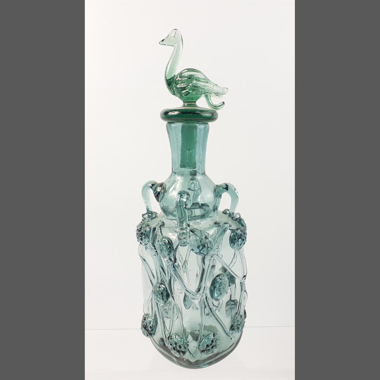A beautiful light green glass decanter with swan stopper standing 30cm tall. In good order with very rough pontil suggesting hand-made origin