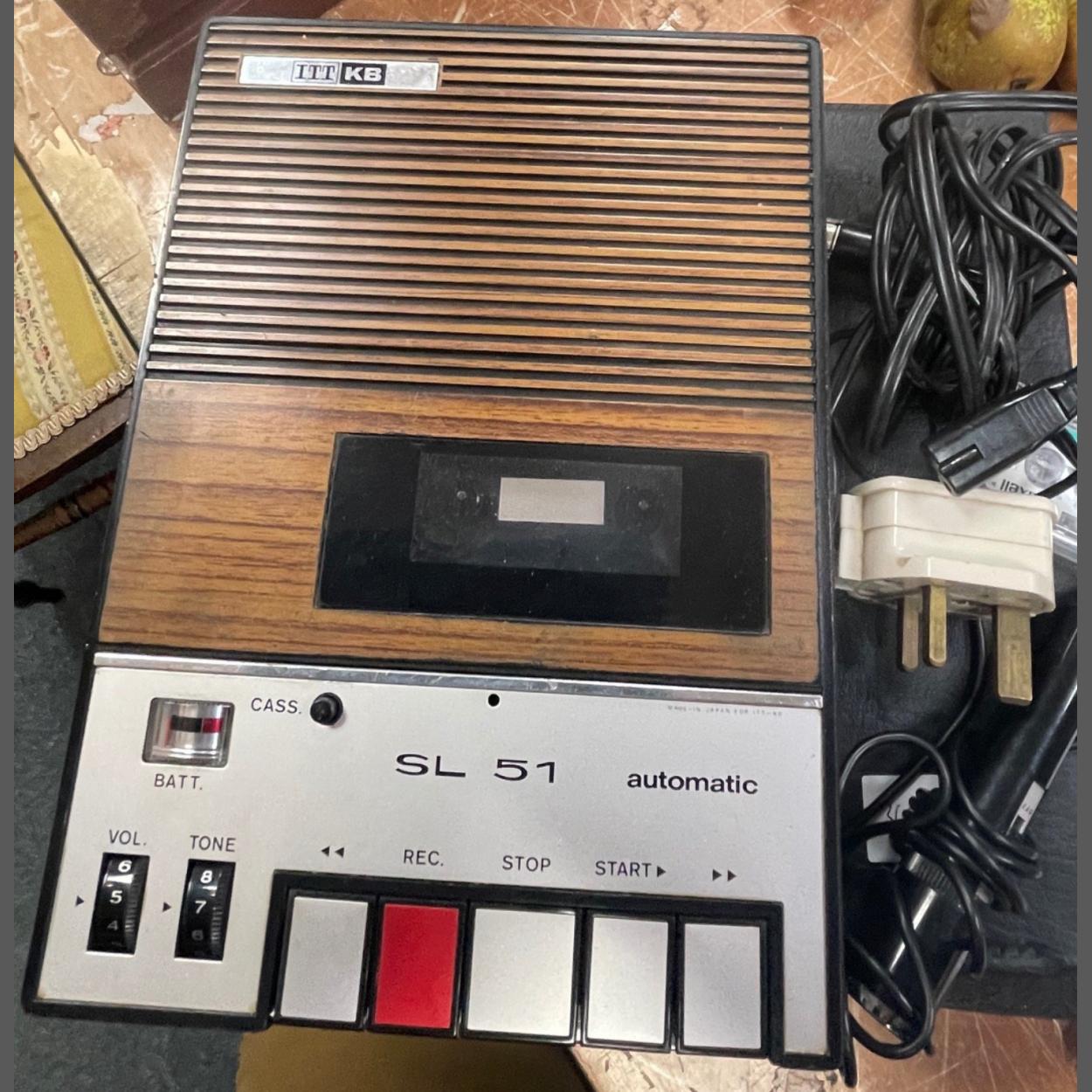 An ITT KB SL 51 automatic tape recorder compete with case and small microphone