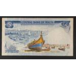 A Central Bank of Malta 1967 five liri bank note. In good condition with light creasing