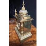 Antique 19th century French JAPY FRERES gilt brass mantle clock on a plynth - back movement cover is missing and the glass from the face is also missing - dimensions 47cm height x 28cm width x 18cm depth approx