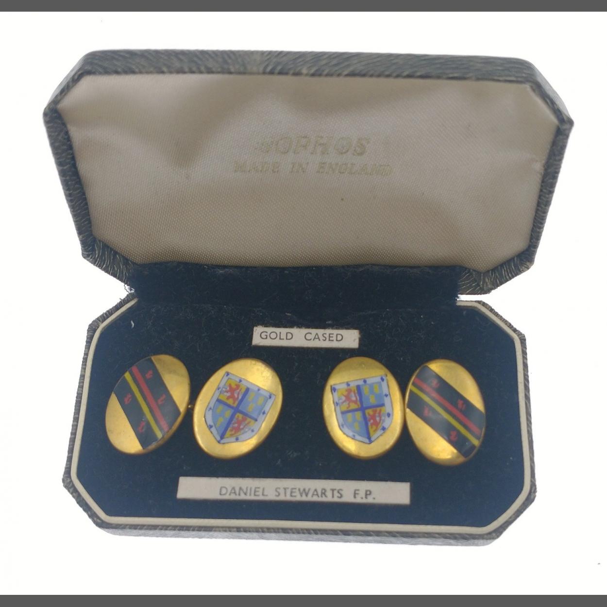 A pair of DANIEL STEWARTS FP cufflinks in yellow metal - still within their original presentation jeweller's box