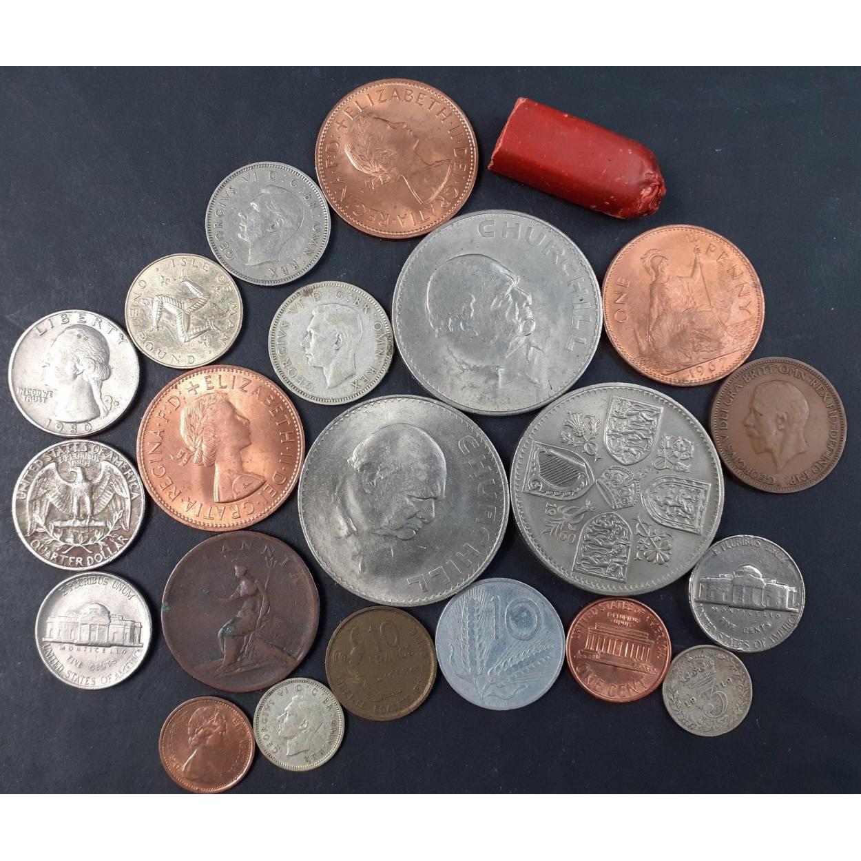A small collection of mainly USA 1964, 1969, 1980 etc coinage to include 5 cent coins, quarter dollars and other British coinage etc