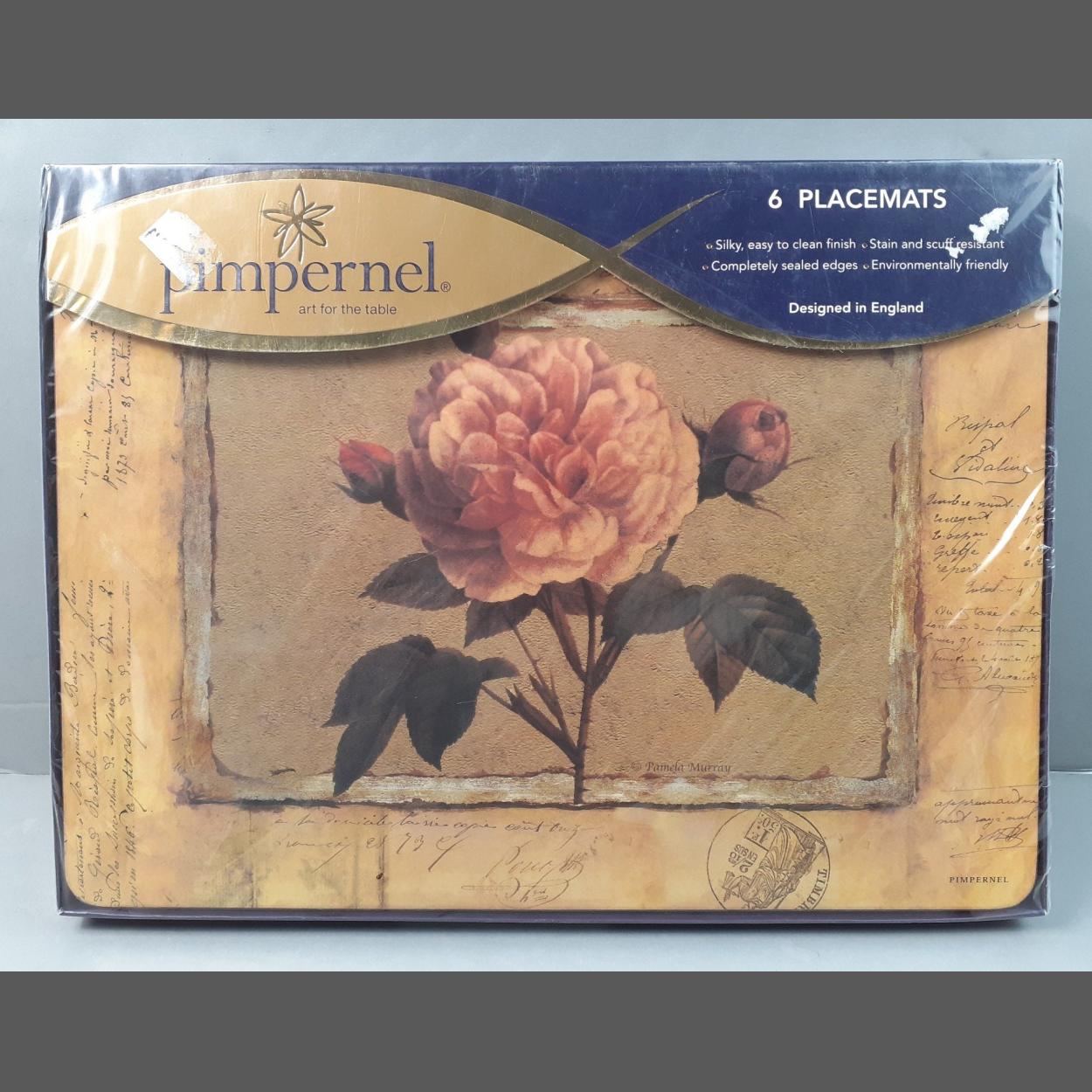 6 PIMPERNEL large placemats depicting a rose - new packaging unopened - dimensions 30cm x 23cm approx