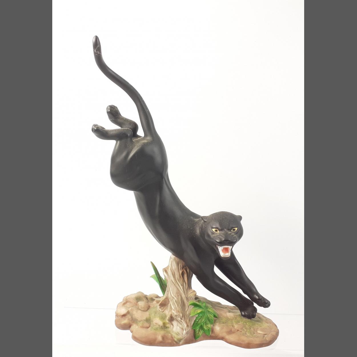 1988 Franklin Mint night hunter Black Panther porcelain figurine - dimensions 20cm length x 30cm height