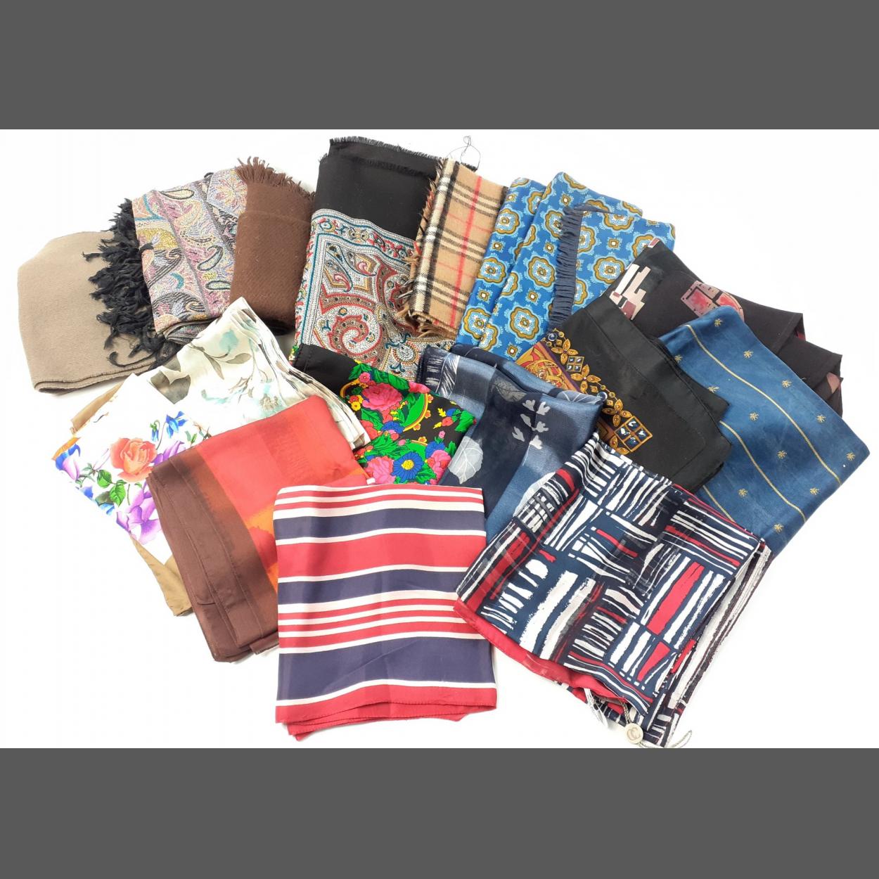 A SCARF LOT! A quantity of mainly ITALIAN SILK scarves (10 qty approx) and with also 5 cotton/polyester decorative scarves etc