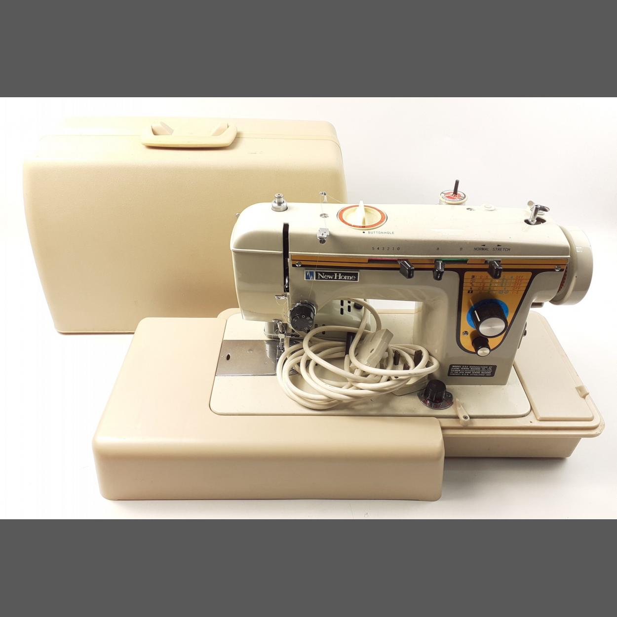 An ELECTRIC SEWING machine - 'NEWHOME model 533 ' pedal operated complete with wiring and plugs etc