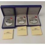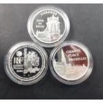 Three beautiful MONNAIE DE PARIS silver proof coins each beautifully presented in a plush case with certificate. Each coins struck in 90 silver and weighs 22g approximately. Comprising Grand Place Bruxelles, Lisbonne and IRF.