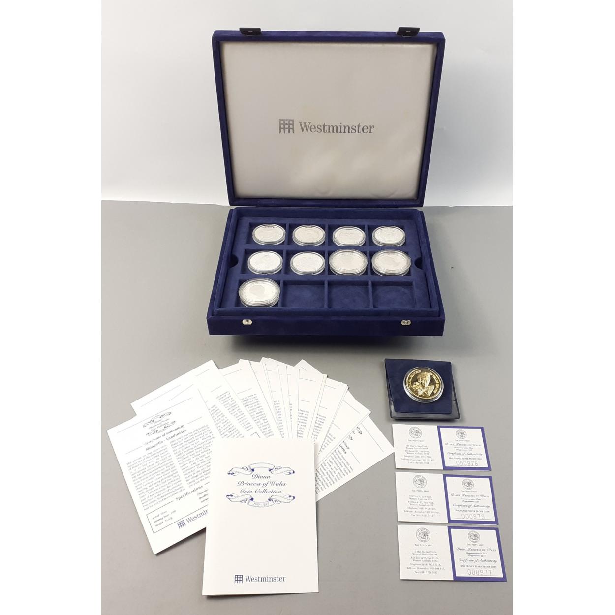 WOW - A Westminster Mint Princess of Wales Coin Collection comprising 21 sterling silver proof coins encapsulated and with certificates. Weights and silver content varies with some being 999 most 925. Beautiful coins gorgeously presented.