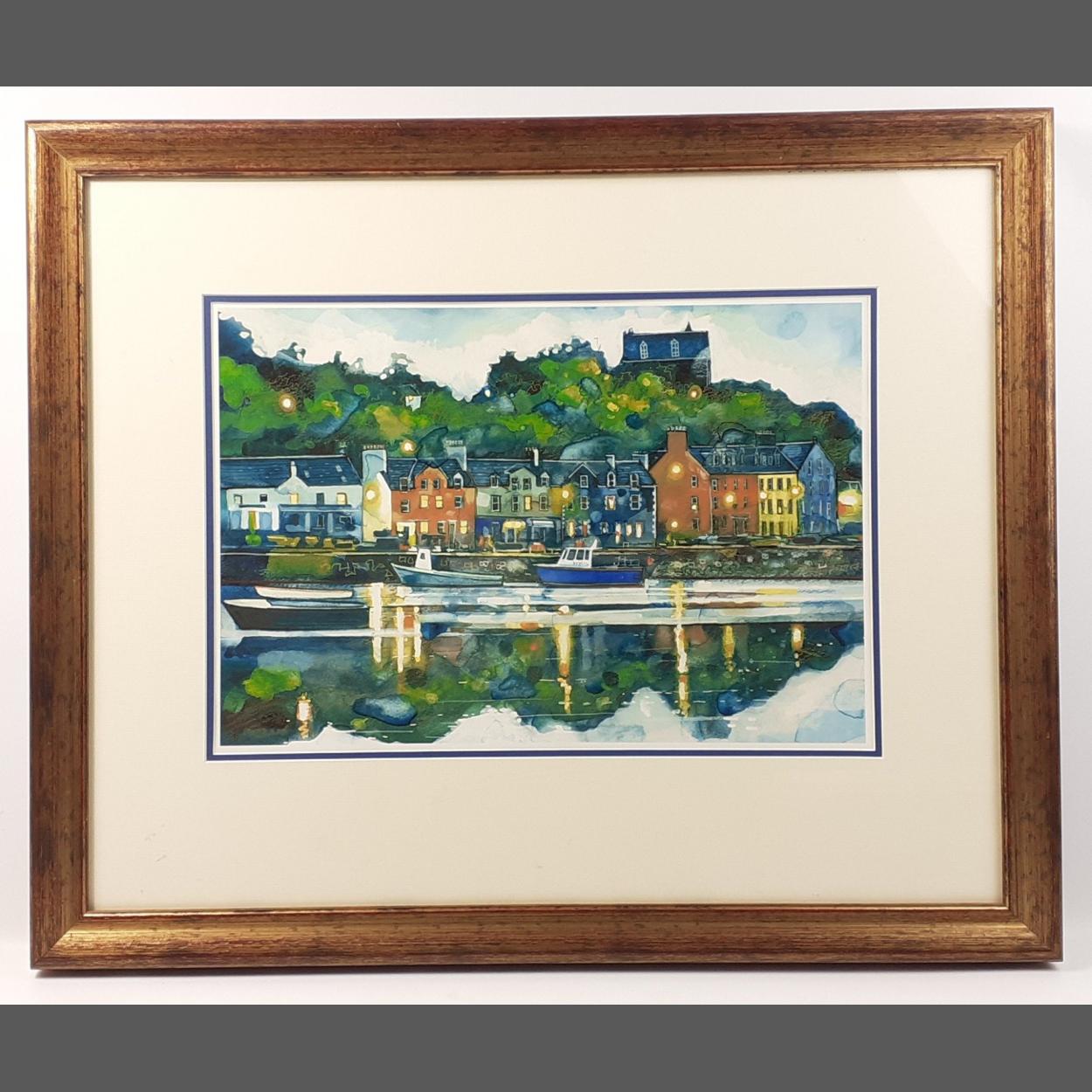 A SCOTTISH colourful harbour scene print (OBAN?)- frame size 64cm x 54cm approx- professionally framed by McHardy's framers Peebles