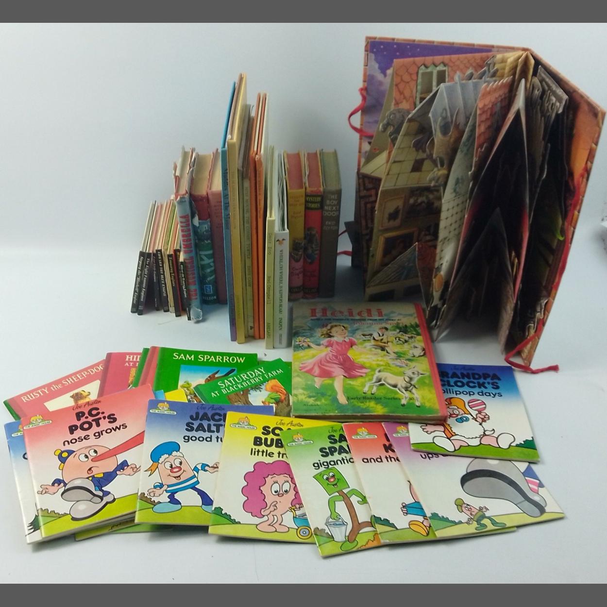 A box of young children's books to include a first edition copy of The New Roof by HILDA BODEN and the first English edition of The Musical Umbrella by FRIEDRICH FELD, plus a signed copy of Invisible Magic by ELISABETH BERSFORD and eight books from THE REV W AWDRY Railway series including Mountain Engines and Edward the Red Engine, 11 books from the Blackberry Farm Books by JANE PILGRIM and many more