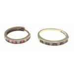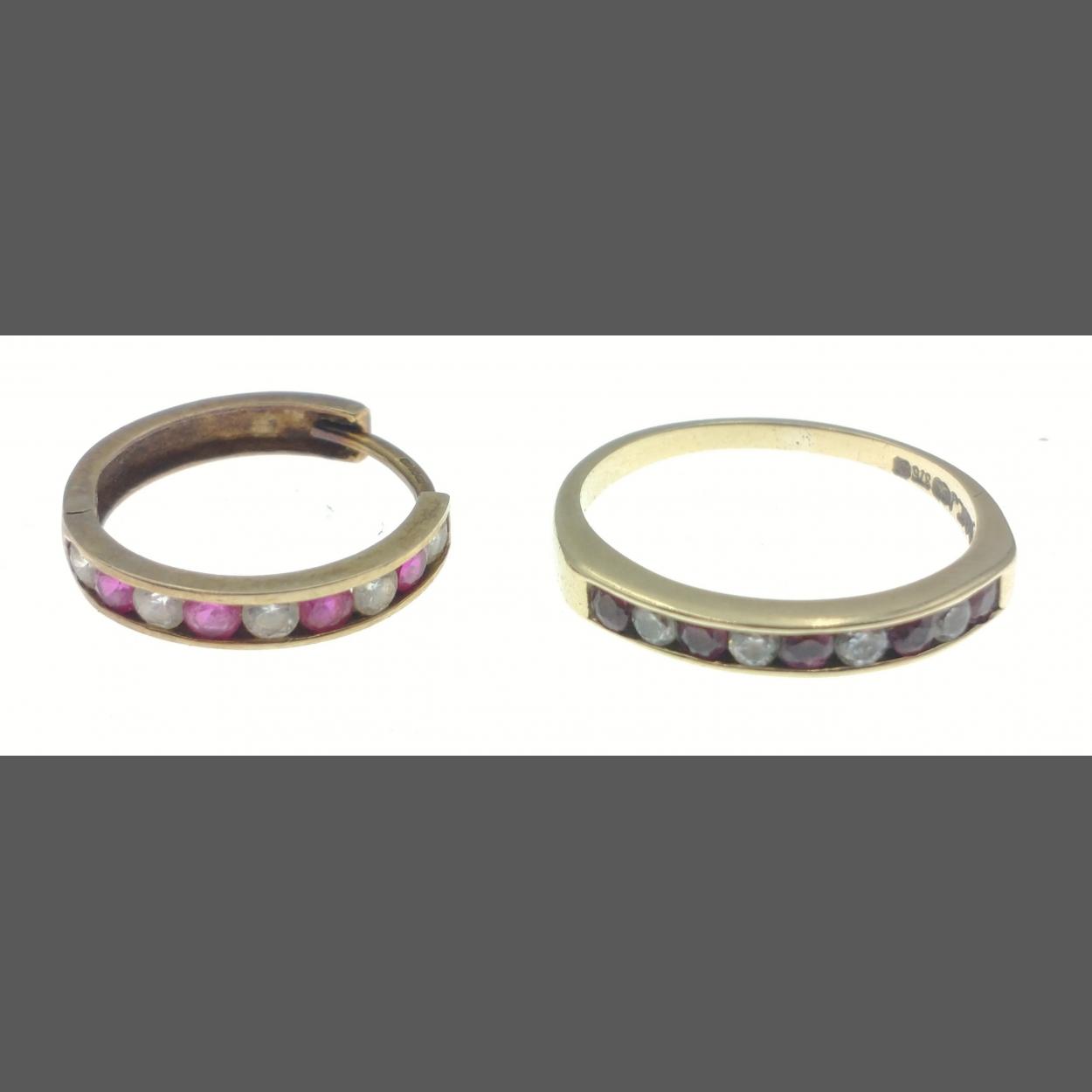 Two 375 hallmarked jewellery items set with red and white stones to include a ring, size L, gross weight 1.44g approx and a single earring gross weight 0.95g approx. Total gross weight 2.39g approx