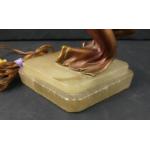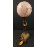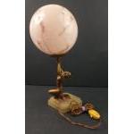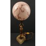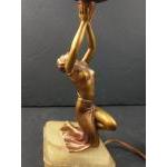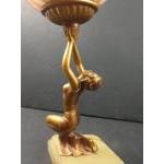A stunning Deco style antique table lamp of a female spelter figure on onyx base holding a ball shade. A really attractive piece ! 40cm approx including shade.