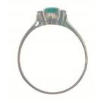 One yellow metal ring set with green stone flanked with 2 small diamonds (tested) size Q, gross weight 1.3g approx. Doesn't react to magnet
