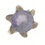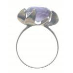A 14K stamped ring set with large purple stone approx 12mmx12mm, size O, gross weight 3.75g approx