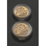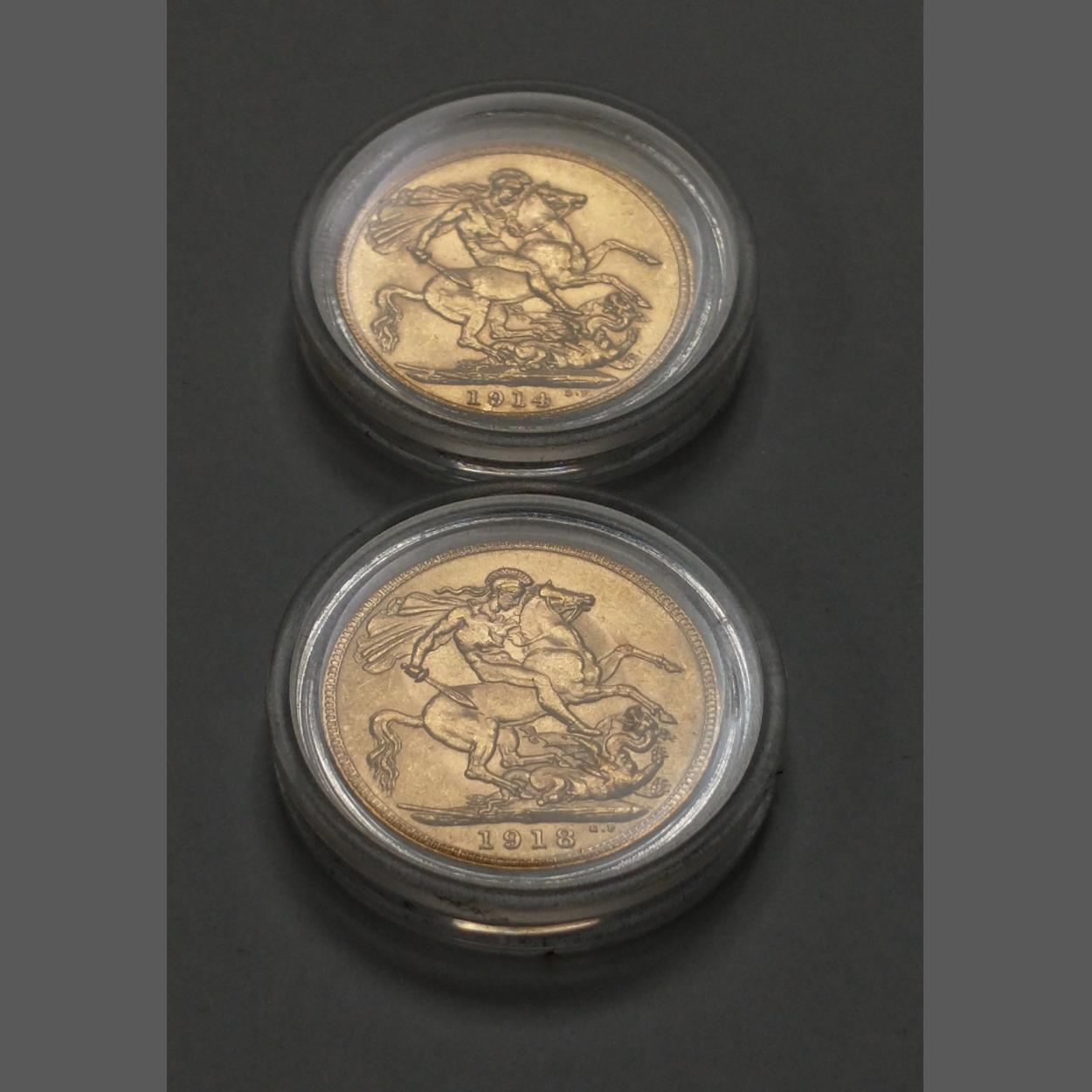 From the London Mint - a boxed set of The King George V First World War first and last year gold sovereign pair 1914 and 1918, in coin cases and London Mint presentation box. 1918 crries mint mark I