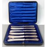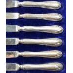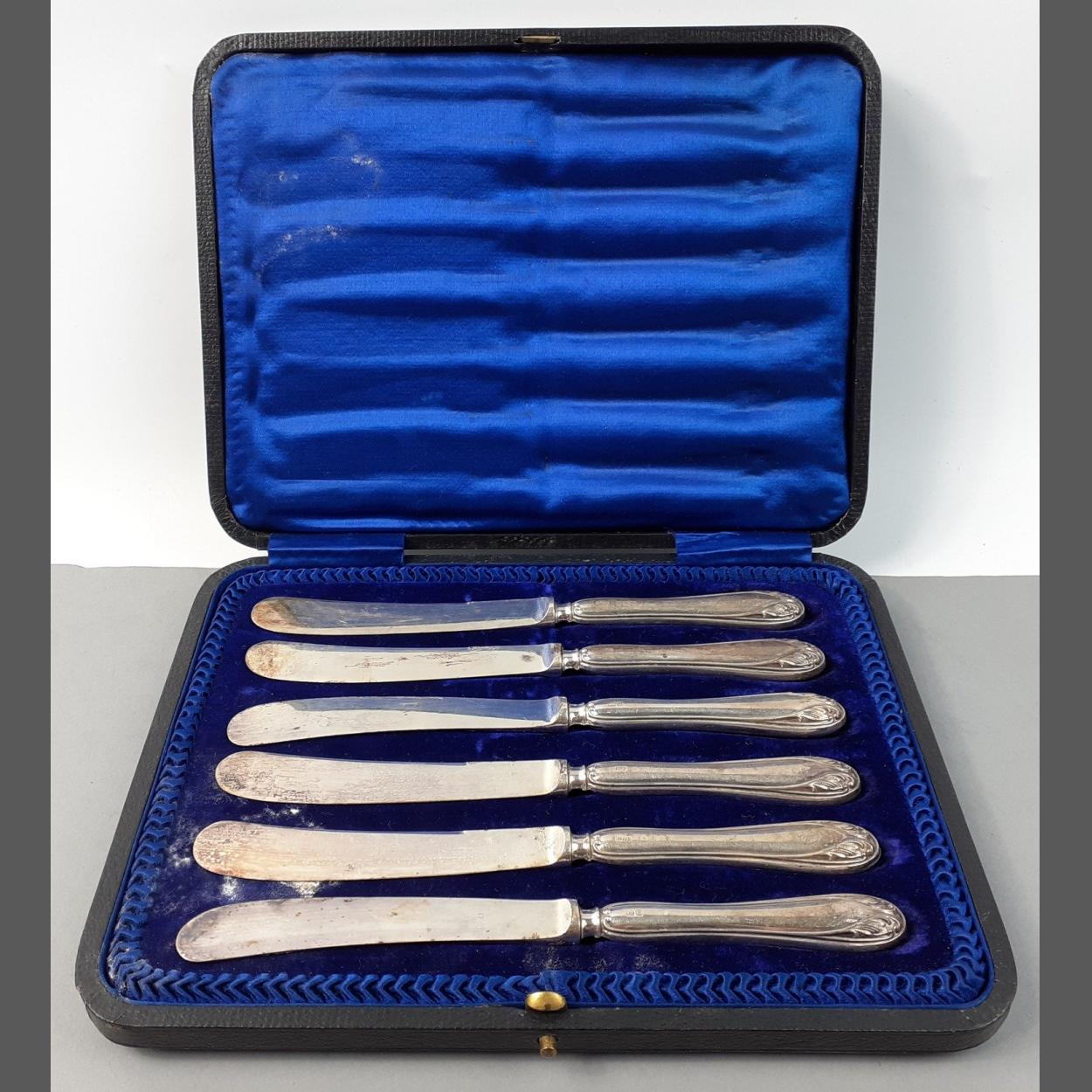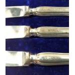 A boxed set of silver handled butter knives. Pretty knives each 16cm approx.