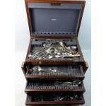 A large canteen part set of mixed cutlery - just over 120 pieces - all within a SUBSTANTIAL hardwood canteen - dimensions of canteen 19” width x 13” depth x 14” height approx - it has three drawers with a lockable system - alas no key