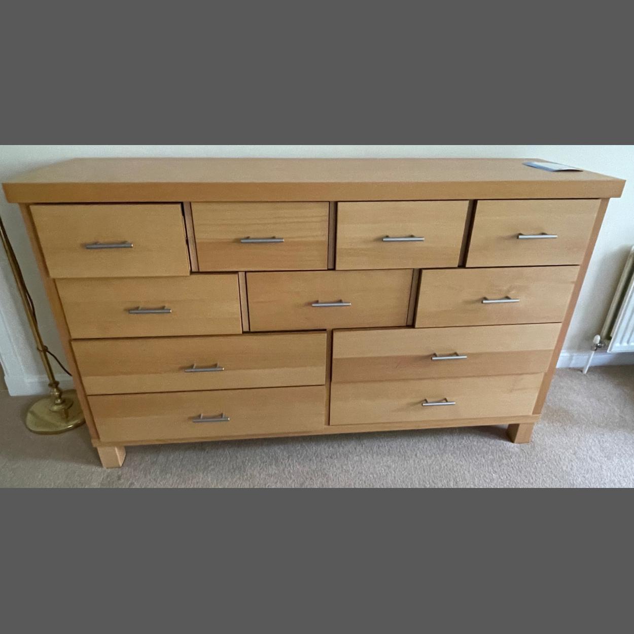 A large modern chest of drawers, 4 drawer over seven, light ash style, 4ftL x 18"D x 3ftH approx
