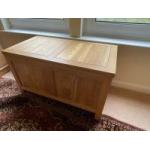 A solid light oak ottoman 3ftW x 18"D x 18"H approx - ideal for summer storage of blankets