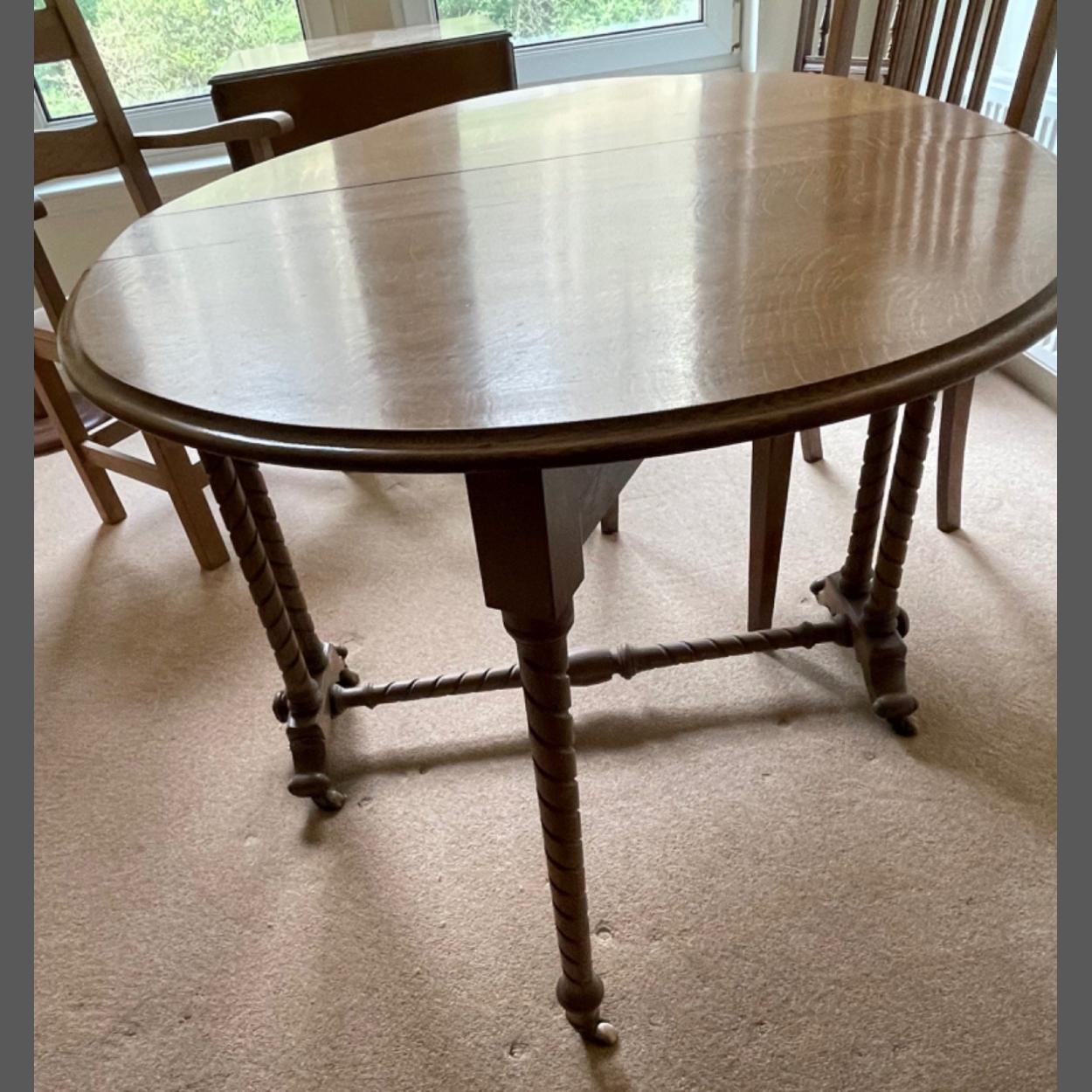 A VICTORIAN top quality slim line drop leaf dining table with turned legs, dimensions when extended 3ft approx and unextended 1ft approx. In lovely condition