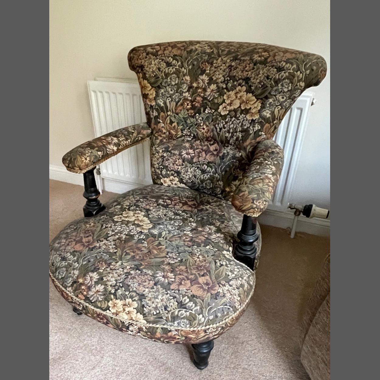 A VICTORIAN floral fabric covered nursing chair with padded armrests - really comfy
