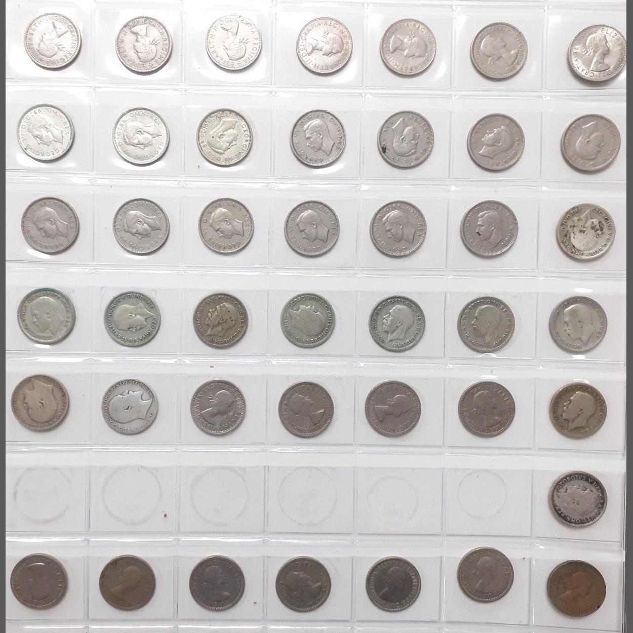 Sing a song of sixpence! An album page containing 43 sixpence pieces. Includes 15 x pre-1947 coins some in better grades.