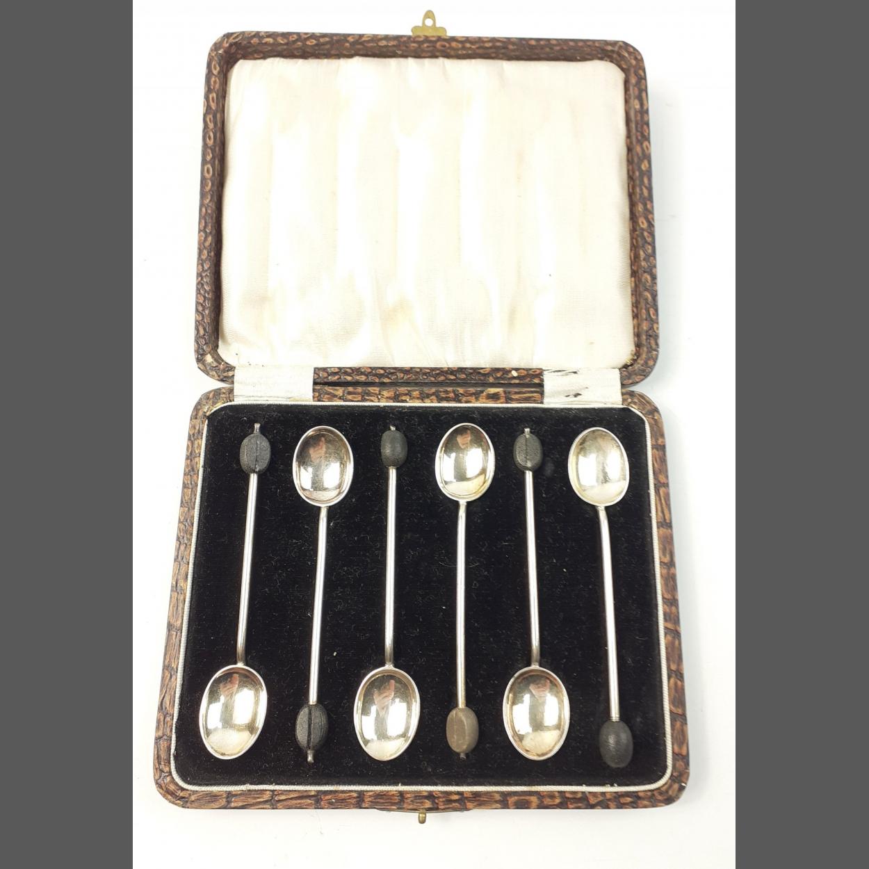 A set of 6 boxed spoons with coffee bean finials hallmarked Birmingham 1923, each 10cm long, gross weight 50g approx