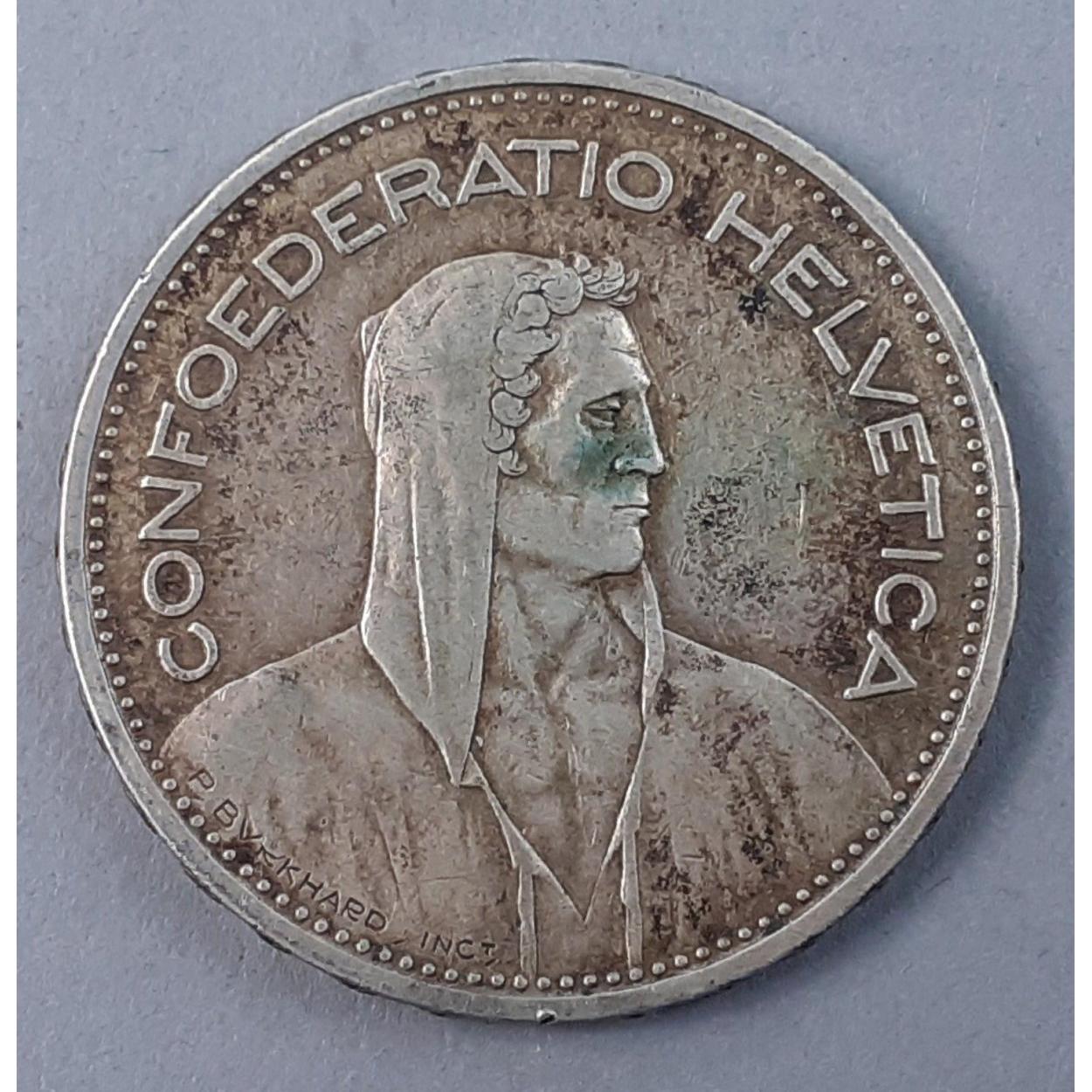 COIN of Switzerland - 1932 silver 5 Francs. Nice example with toning.