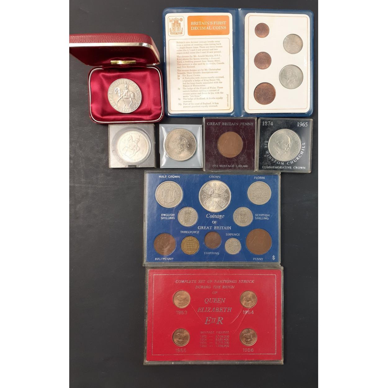 COINS OF INTEREST to include slabs containing Coinage of Great Britain, QEII Farthings, Decimal wallet and several crowns.