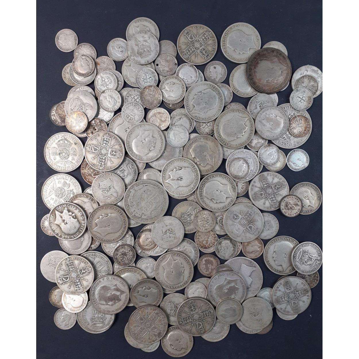 A great lot of PRE-1947 UK Coinage. Much of interest in various grade inc. 1883 Victoria with wear. Total weight 710g approx,