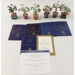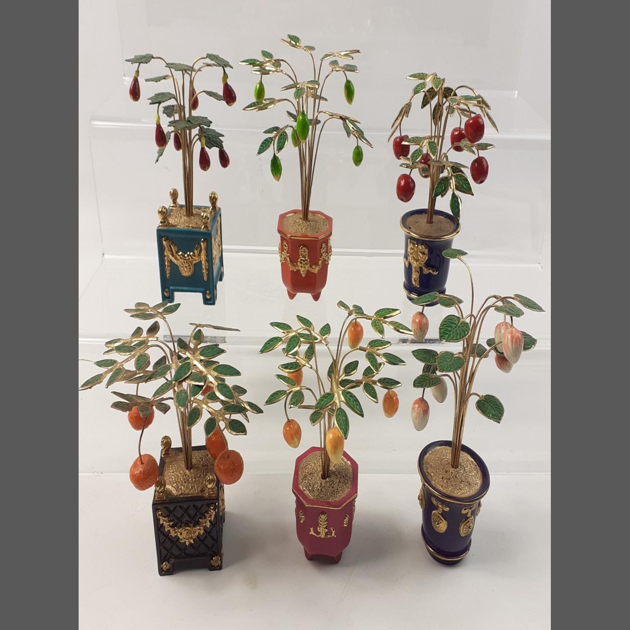 official issue of The House Of FABERGE with certificates - ONE OF TWO LOTS - to include The Imperial Lime tree, Fig Tree, Apricot Tree, The Peach Tree, Apple Tree and The Imperial Orange Tree - all with certificates apart from the lime tree which only has a shipping document - tallest item 10cm approx - x 6 items - purchased retail at £30 each approx!