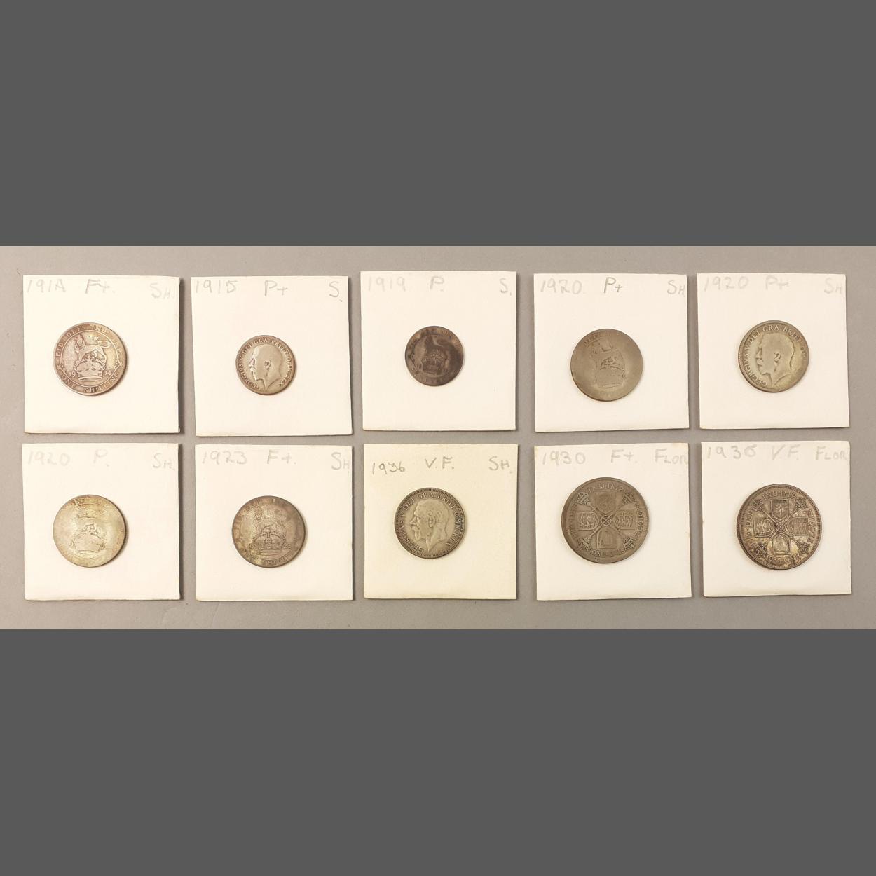 A small collection of collated silver coinage in packets.10 coins in total all with wear. Includes 2 x florins. Total gross weight 60g approx.