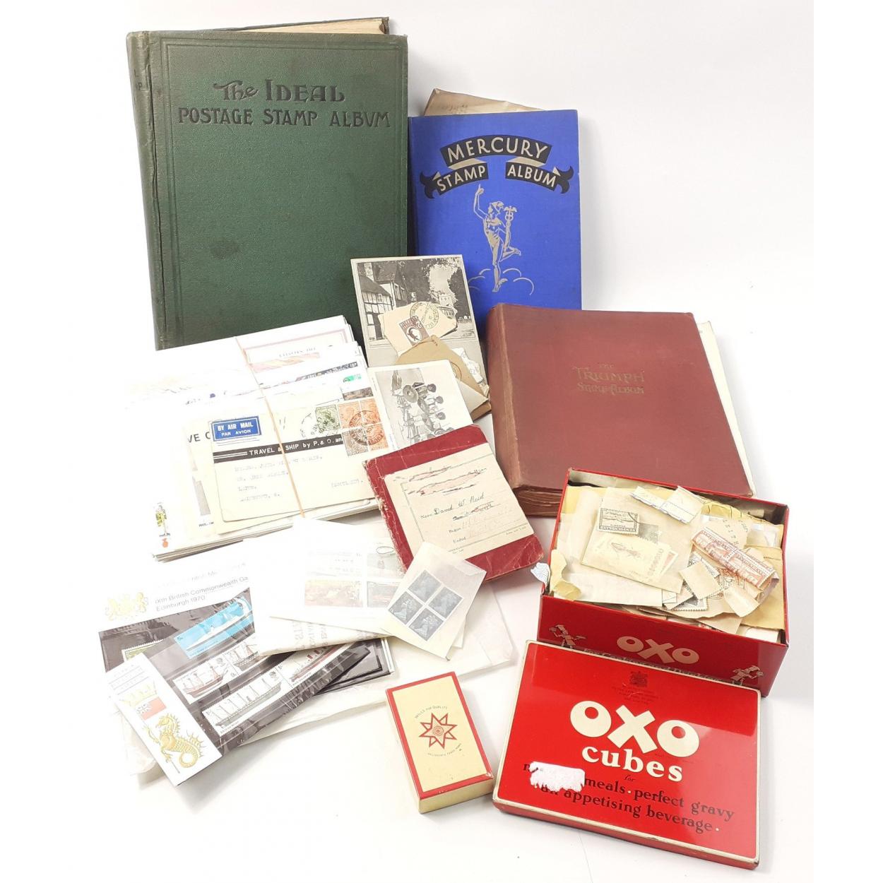 STAMPS. An early 1900s album sparsely filled but with some Imperial stamps of interest. Another album to include some interesting early German FLUGPOST overprints, 2 x Australia 5/, Belgian overprints, another album. Many loose stamps. Lots of interest.