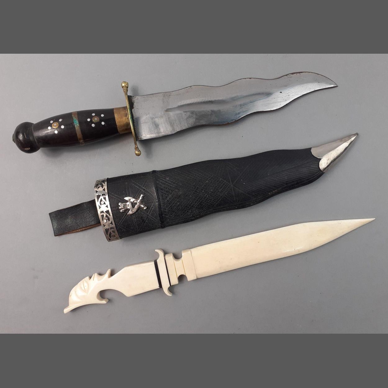 A beautiful VINTAGE bone letter opener in dagger form - dimension 32cm approx - also an ASIAN KRIS dagger in sheath 33cm in length approx