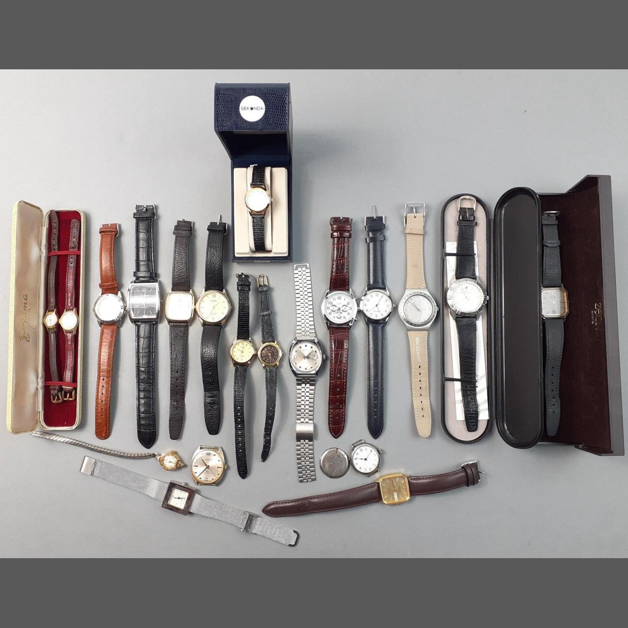 A large quantity of wrist watches to include SEKONDA - SWATCH - LORUS - a Famous Grouse watch cased etc etc - total - 20 watches approx