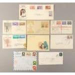 Postage stamps of interest. Inaguration of INDIA FDC with folder of hinged stamps, a 1971 cancelled PENNY BLUE on cover, other Indian covers with Conquest of India and Geological Survey.