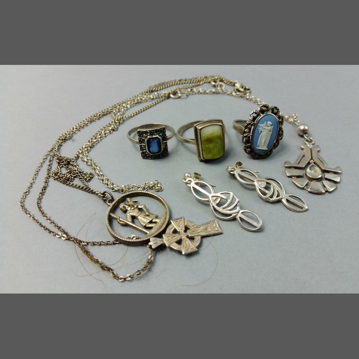 A small collection of silver jewellery. Total gross weight 24.4g approx, to include rings, necklaces etc