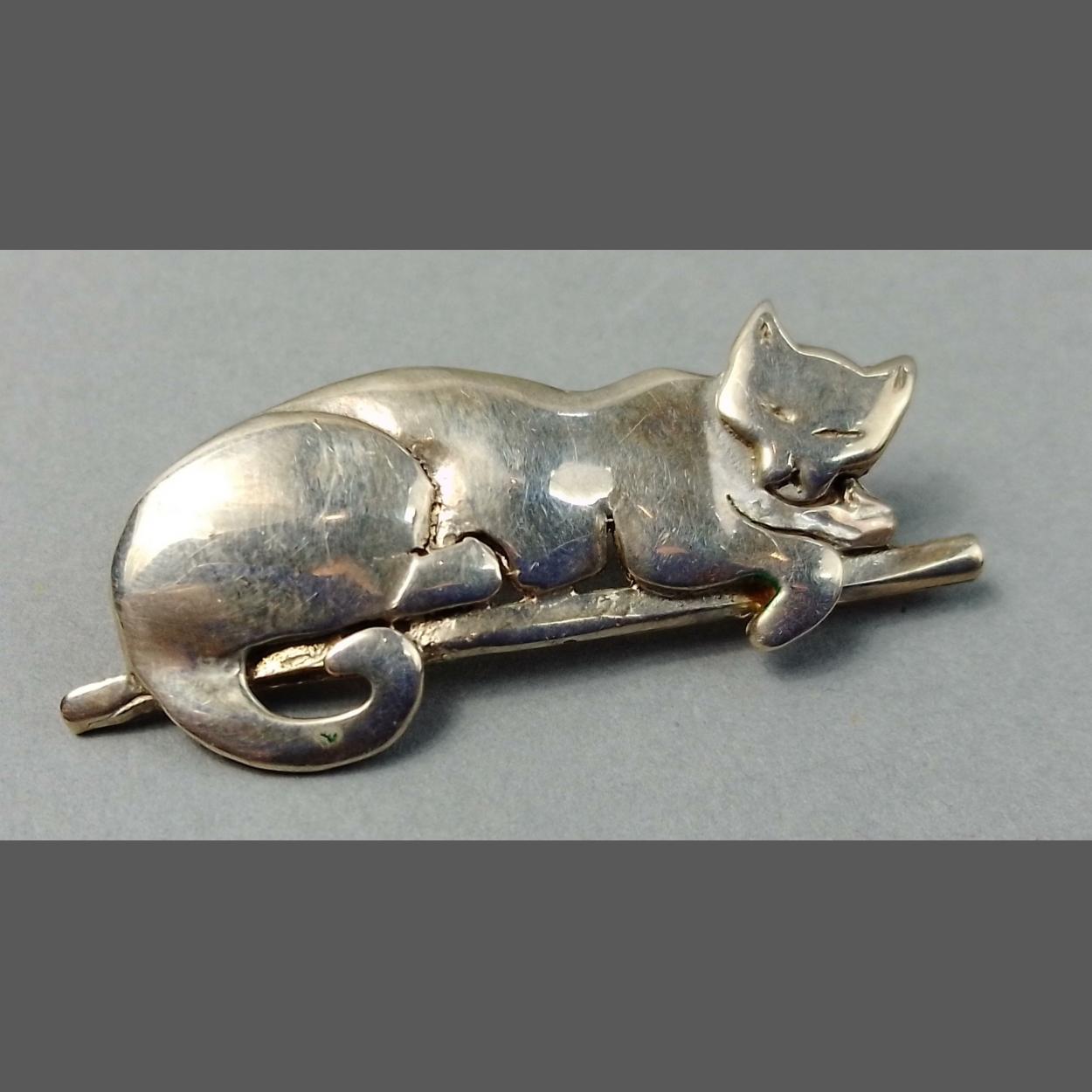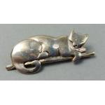 PRRRR! - A lovely wee silver reclining cat brooch, fully hallmarked (indistinct), weight 4.35g approx, 3cm long approx