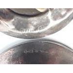 A beautiful small sterling silver fully hallmarked Capstan Inkwell. Hallmarks for London 1909. 6cm diameter approx and weighs 64g approx. Indistinct maker. Lot includes a very small and battered antique silver photo frame.