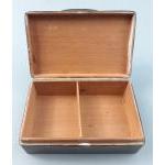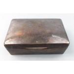 A sterling silver hallmarked cigarette case with rubbed marks and damaged hinges. Cedar wood lined with filled weighted base. Would benefit from a clean but generally in fairly good order. Total gross weight 490g approx. 5 x 14 x 9cm approx.