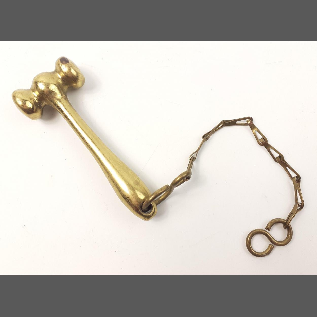 A very nice solid brass toffee hammer on a chain. Hammer is 10cm long approx