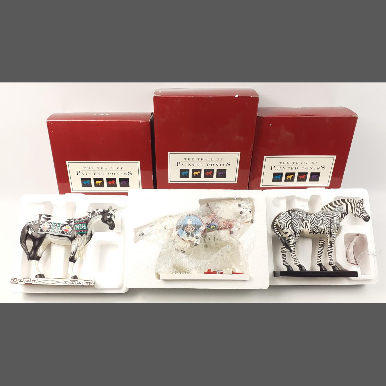 Three WESTLAND Giftware painted ponies in original boxes to include Incognito (1524), Sacred Reflection of Time (12253) and Tewa Horse