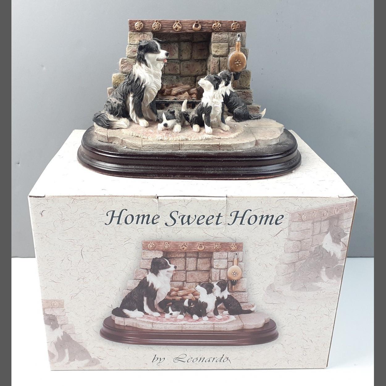 LEONARDO collection HOME SWEET HOME - a gorgeous model of border collies sitting by the hearth. 12 cm tall and in good condition.