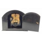A Smiths Enfield wooden mantle clock with key. 29cm wide - 23cm tall approximately. A nice example.
