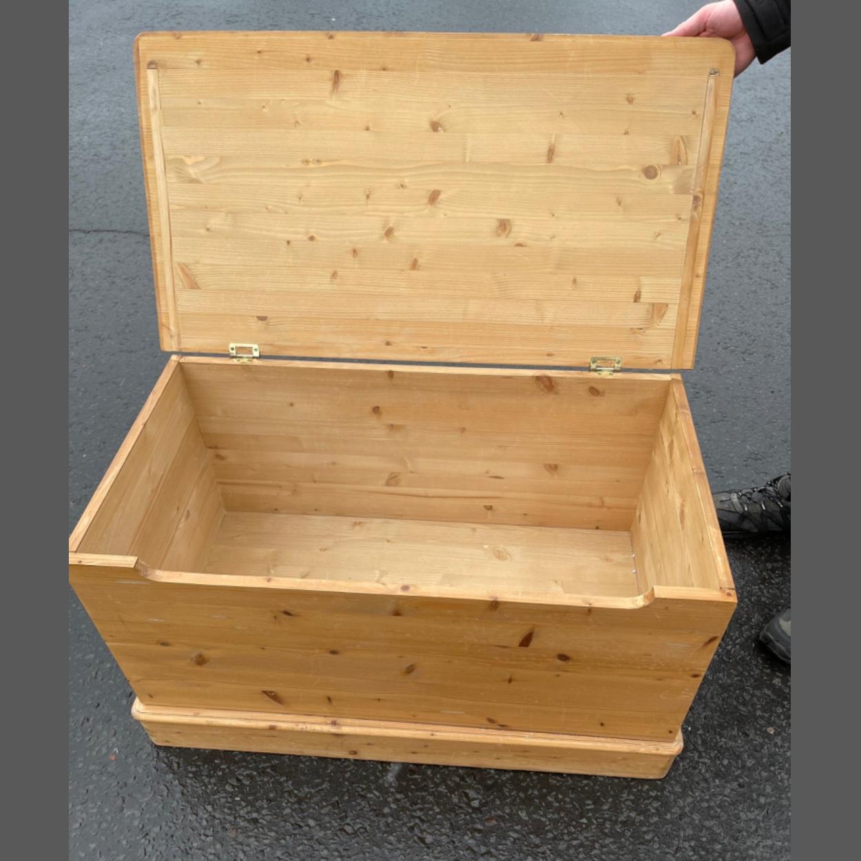 A pine blanket or storage chest in nice clean condition - ideal also for 'up-cycling' by chalk painting etc - dimensions 3ft x 18" x 18" height