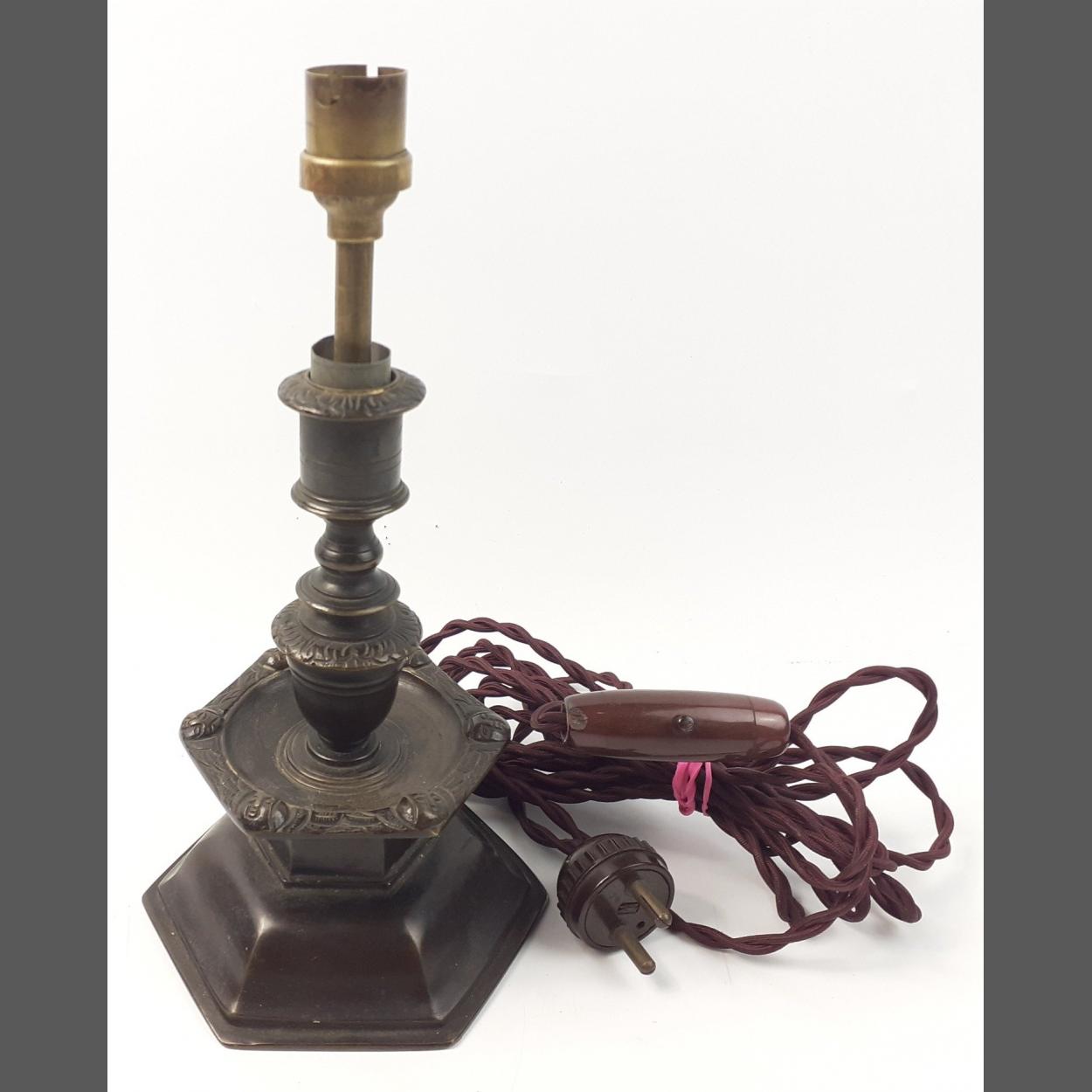 A vintage brass candle lamp 25cm tall approx, still retaining Bakelite 2 pin plug.