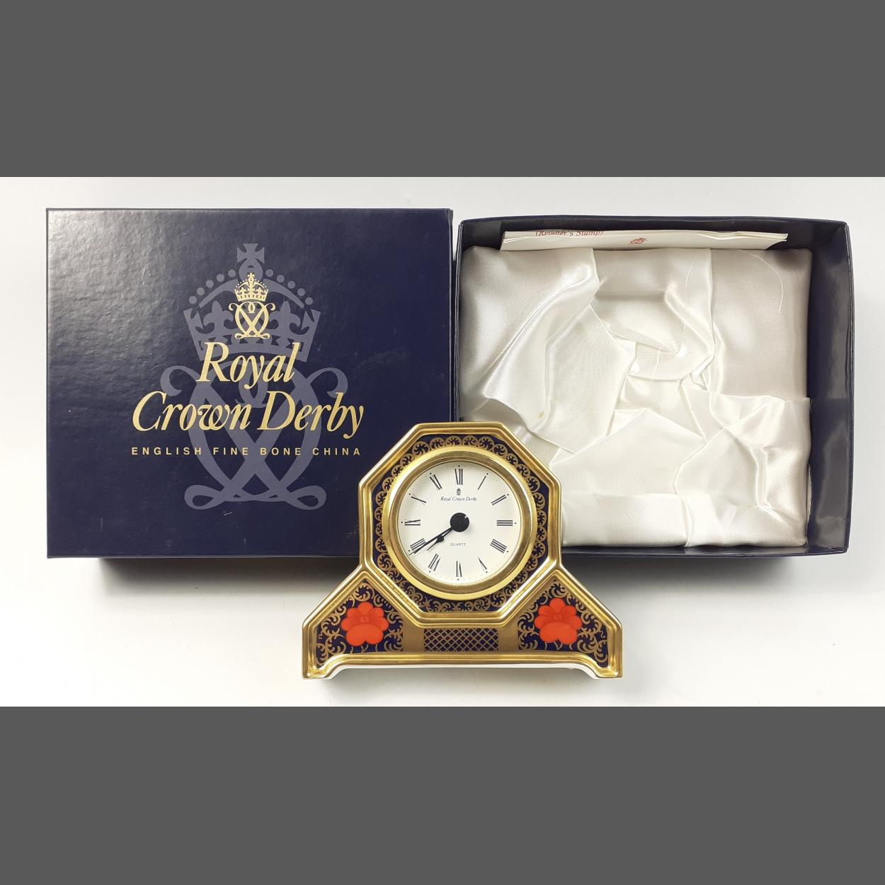 A boxed ROYAL CROWN DERBY Fine Bone China clock in a box. A beautiful item in excellent condition. Clock may require a new battery.